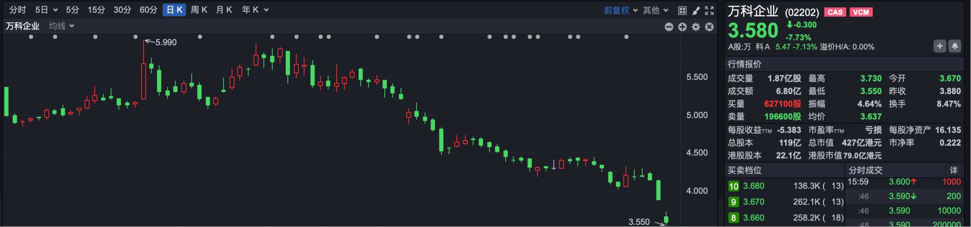 焦点公司方面,万科企业(HK02202)连续两天大跌。11月26日跌超6%,今日再跌7.73%,今年以来累计跌幅超32%,创下其港股上市以来的新低。