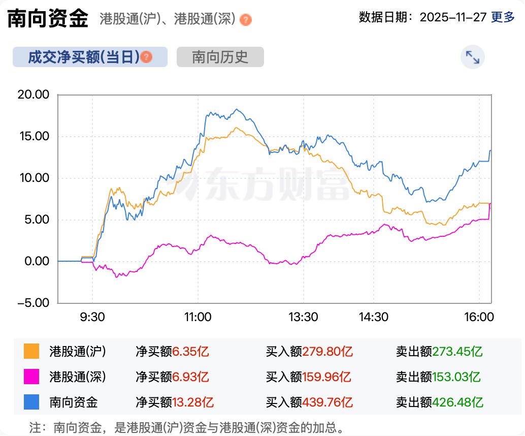 资金方面,昨日南向资金净卖出近40亿港元,今日虽然净买入,但规模不大。截至收盘,南向资金累计净买入港股约13亿港元。
