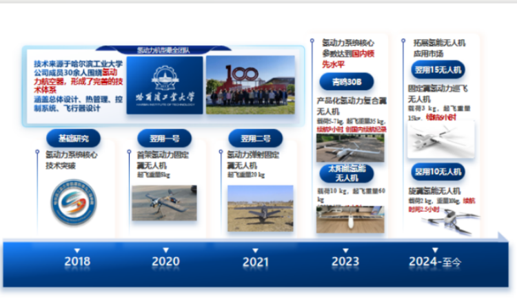 氢动力及低碳能源研究中心内,30余人的研发团队以国家级人才为引领,已申请航空氢动力专利34项,构建起国内最全的氢动力无人机谱系——从弹射固定翼、手抛机到多旋翼、复合翼,数十种型号覆盖全域应用场景。