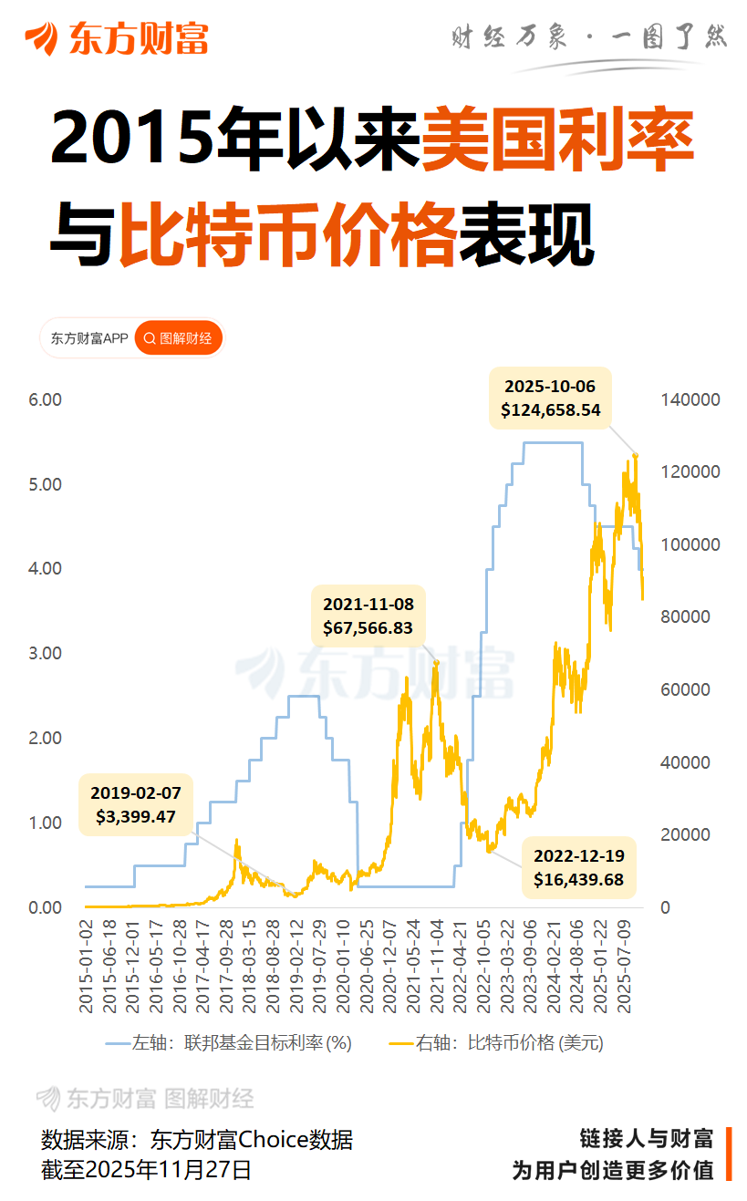 其一,由于近期下跌幅度过大,以比特币为主的加密货币市场迎来超跌反弹。以比特币为例,其年内一度涨至126000美元以上,11月21日一度跌至80000美元关口,回调幅度巨大。
