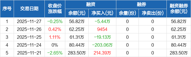 中证A500指数ETF:融资净偿还5.44万元,融资余额56.82万元(11-27)