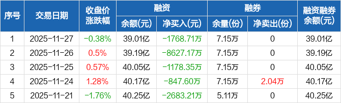 恒生ETF:融资余额39.01亿元,创近一年新低(11-27)