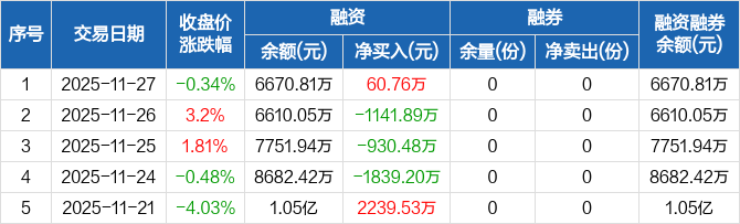双创ETF:融资净买入60.76万元,融资余额6670.81万元(11-27)