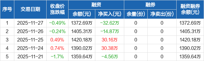 医疗ETF易方达:融资净偿还32.62万元,融资余额1372.69万元(11-27)