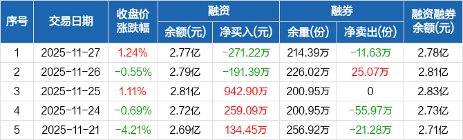 化工ETF:融资净偿还271.22万元,融资余额2.77亿元(11-27)