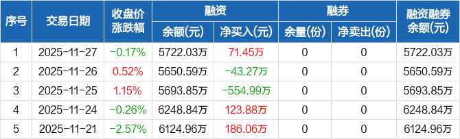 A500ETF:融资净买入71.45万元,融资余额5722.03万元(11-27)