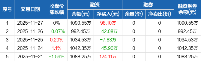 机器人ETF嘉实:融资净买入98.1万元,融资余额1090.55万元(11-27)