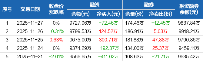养殖ETF:融资净偿还72.46万元,融资余额9727.06万元(11-27)