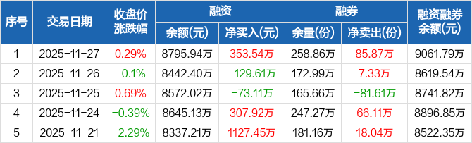 电力ETF:融资净买入353.54万元,融资余额8795.94万元(11-27)