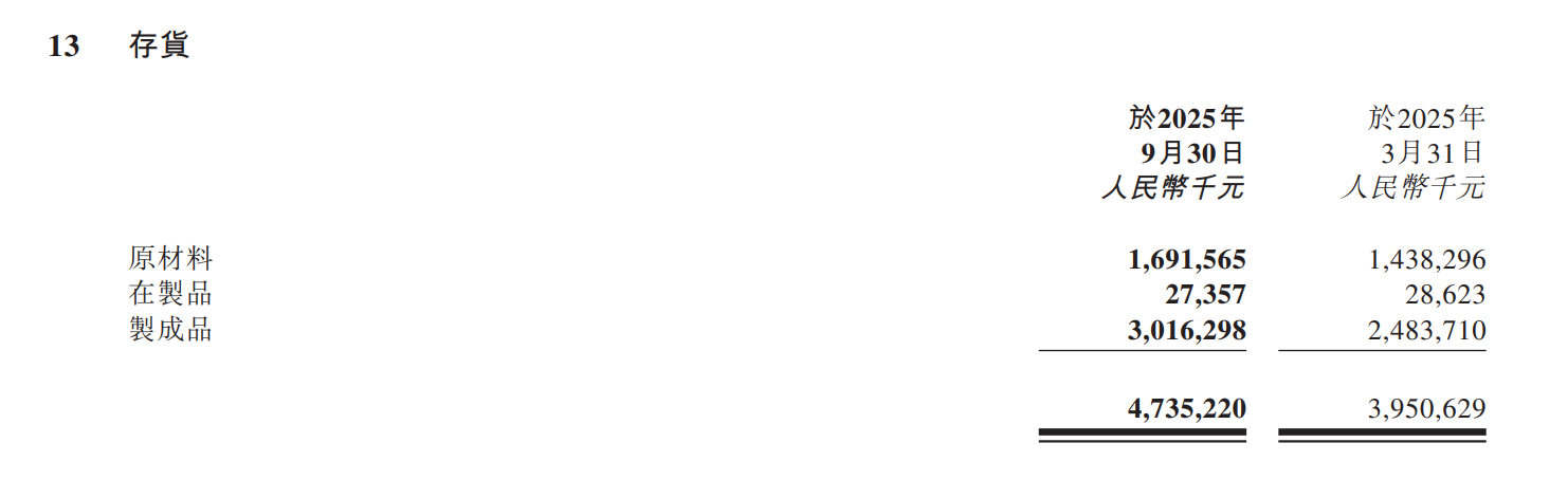 波司登半年财报显示,截至2025年9月30日,公司存货金额为47.4亿元,同比减少20.3%。其中原材料下降18.7%,降幅同样在两成左右。
