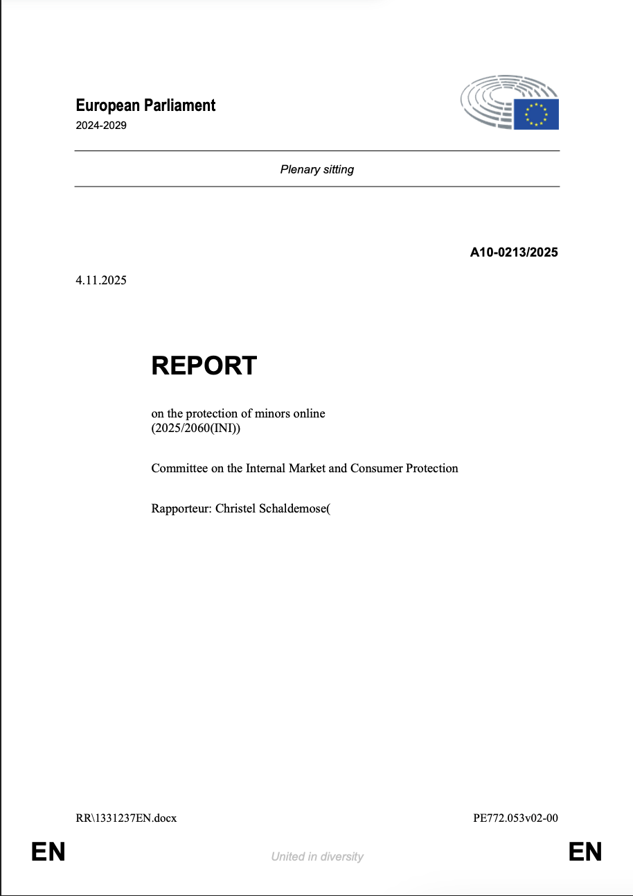 先把目光聚焦在欧盟。此前,《数字服务法》(DSA)已将保护未成年人确立为核心政策目标之一。11月26日,欧洲议会议员高票通过了一份不具法律约束力的报告,呼吁将“使用社交媒体、视频分享平台和陪伴型AI产品”的最低年龄统一设定为16岁,13至16岁的青少年则可以在父母同意的情况下使用。