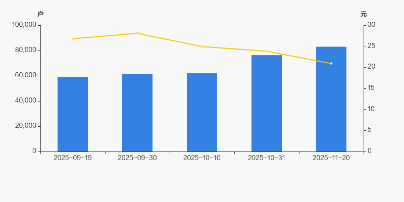2025年9月19日至今,公司股东户数显著增长,区间涨幅为40.67%。2025年9月19日至2025年11月20日区间股价下降21.98%。