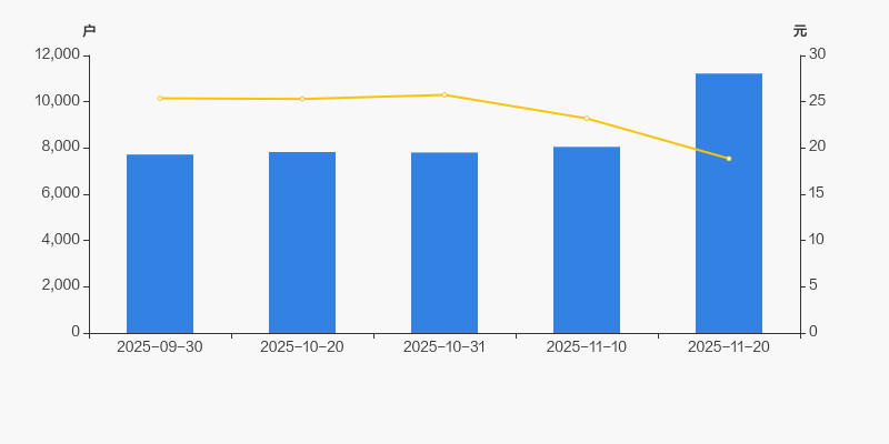 2025年9月30日至今,公司股东户数显著增长,区间涨幅为45.34%。2025年9月30日至2025年11月20日区间股价下降25.70%。
