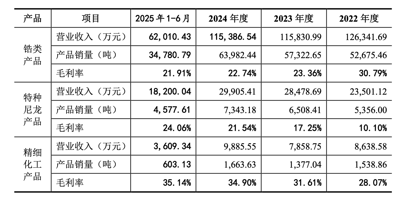 在这样的背景下,处于下游的长裕控股并不存在原材料议价能力。但在正常的滞涨周期中,原材料涨价往往可以向下游客户传导,但《财中社》发现,报告期内锆类产品的毛利率从30.79%一路下滑至21.91%,单价也从2022年的2.40万元/吨下滑至2025年上半年的1.78万元/吨。