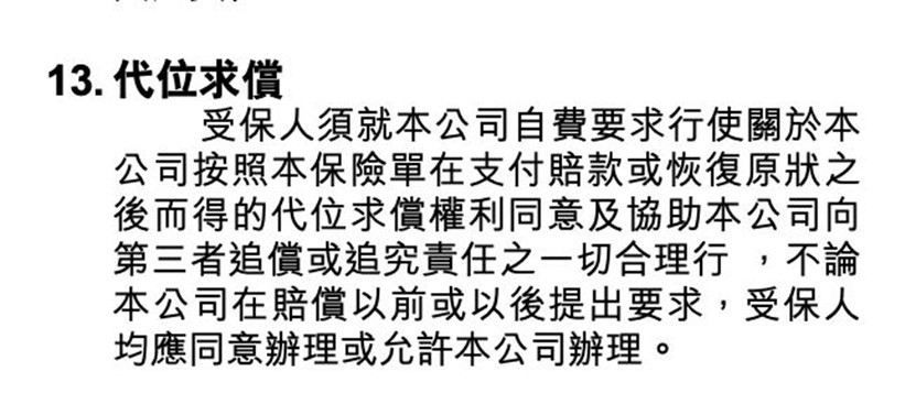 某款香港本地保险公司的火险条款对代位求偿的规定