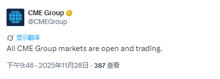 芝商所:所有市场均已开放并恢复交易