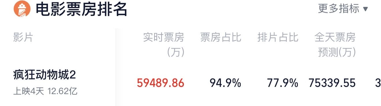 目前,灯塔专业版预测《疯狂动物城2》总票房将达到40.55亿元,猫眼专业版也将其预测总票房上调至42.63亿元。