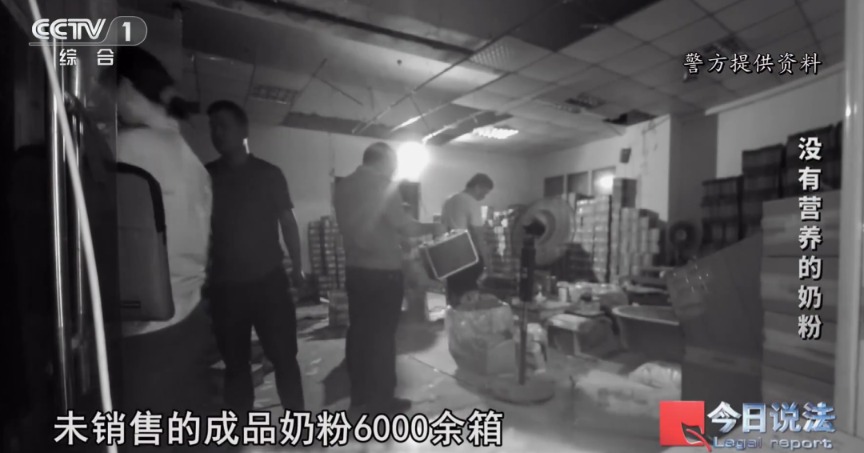 现场抓获正在生产的嫌疑人12名,查获大量生产伪劣奶粉的原材料、包装材料、设备等以及生产好未销售的成品奶粉6000余箱。