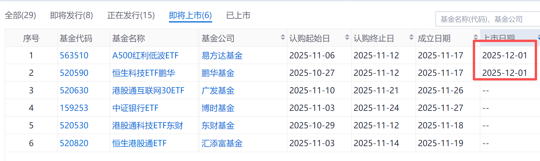 上市方面,下周将有2只ETF上市,分别是恒生科技ETF鹏华和易方达旗下A500红利低波ETF。