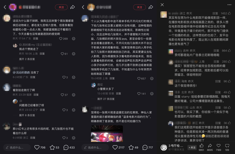 最近正值《鬼灭之刃》和《疯狂动物城2》先后上映,抖音、小红书等社交平台上,都有网友理直气壮地分享盗拍、盗录片段。