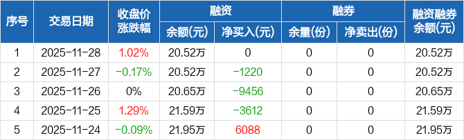 中证500ETF天弘:融资净买入0元,融资余额20.52万元(11-28)