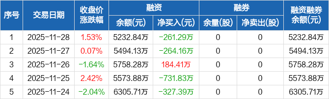 戎美股份:融资净偿还261.29万元,融资余额5232.84万元(11-28)