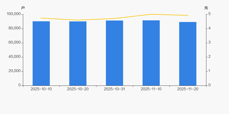 2025年10月10日至今,公司股东户数有所下降,区间跌幅为1.10%。2025年10月10日至2025年11月20日区间股价上涨4.02%。