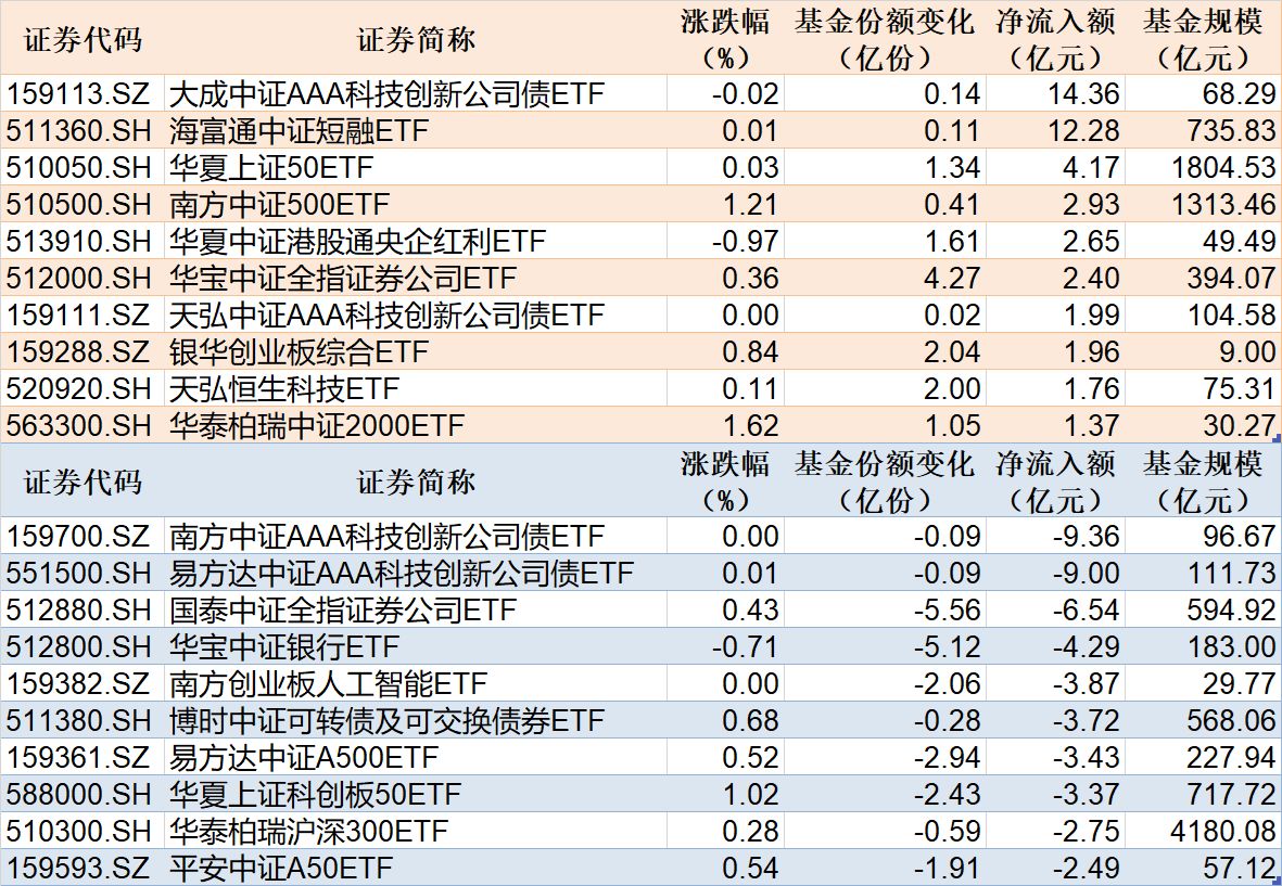 ETF规模速报 | 科创债ETF大成净流入超14亿元,科创债ETF南方净流出超9亿元