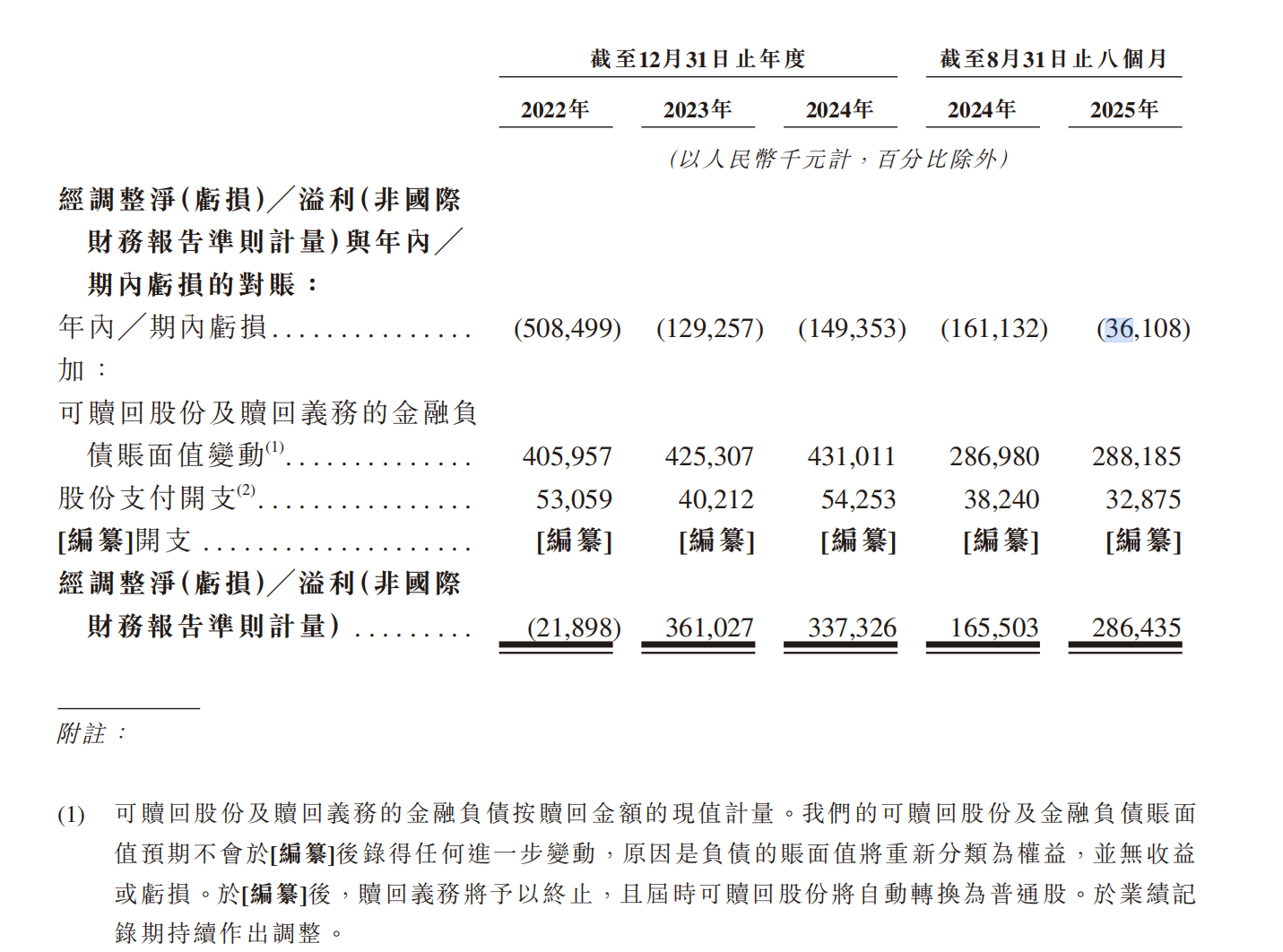 近年Soul盈利高度依赖非经常性调整:按国际财务报告准则(IFRS),2022年-2025年前8个月,公司均处于亏损状态;加上“可赎回股份及赎回义务的金融负债变动”等非经营性项目的收益后,公司经调整的净利润转正——这也意味着,让Soul近年持续盈利的主要动力并非来自情绪价值服务等主营业务。