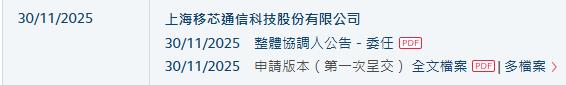 港交所官网信息显示,2025年11月30日,蜂窝通信芯片头部企业——上海移芯通信科技股份有限公司(以下简称移芯通信)向港交所递交IPO申请,拟在香港主板上市,中信建投国际为独家保荐人。