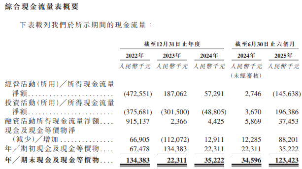 截至2025年6月30日止六个月,公司的经营活动所用现金流量净额为人民币-1.456亿元(见下表),主要由于战略存货积累所致。预期扩大公司的产品线及推出新产品,公司已增加关键原材料(包括晶圆)的库存。这种积极主动的方法旨在确保新产品介绍的材料及时可用,并满足不断增长的客户需求。然而,这一策略导致大量现金流出,导致经营活动产生负现金流量。