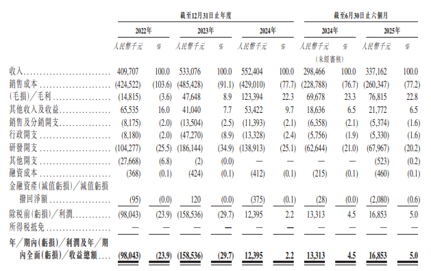 财务数据方面,招股书显示,于2022年度、2023年度、2024年度及2025年截至6月30日止六个月,移芯通信收入分别约为4.1亿元、5.33亿元、5.52亿元、3.37亿元人民币;年/期内利润分别为-9804.3万元、-1.59亿元、1239.5万元、1685.3万元人民币;毛利率分别约为-3.6%、8.9%、22.3%、22.8%。