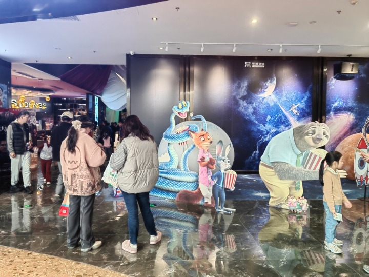 上海一家影院的《疯狂动物城2》打卡布置,钟菡摄