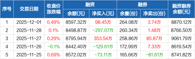 电力ETF:融资净买入98.45万元,融资余额8597.32万元(12-01)