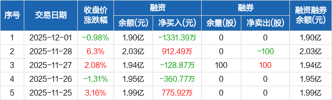 欣锐科技:融资净偿还1331.39万元,融资余额1.9亿元(12-01)