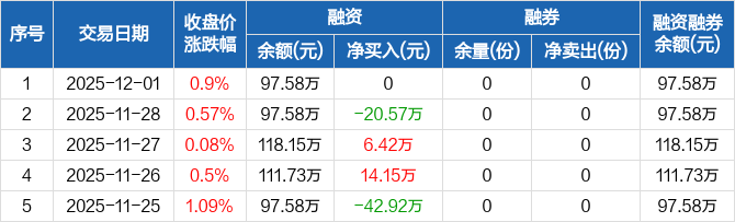 中证A500ETF基金:融资净买入0元,融资余额97.58万元(12-01)