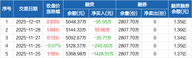 1000ETF:融资净偿还95.95万元,融资余额5048.37万元(12-01)