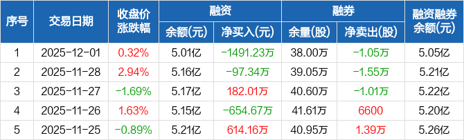 章源钨业:融资净偿还1491.23万元,融资余额5.01亿元(12-01)