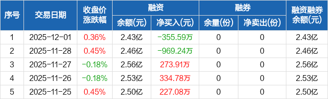 券商ETF:融资净偿还355.59万元,融资余额2.43亿元(12-01)