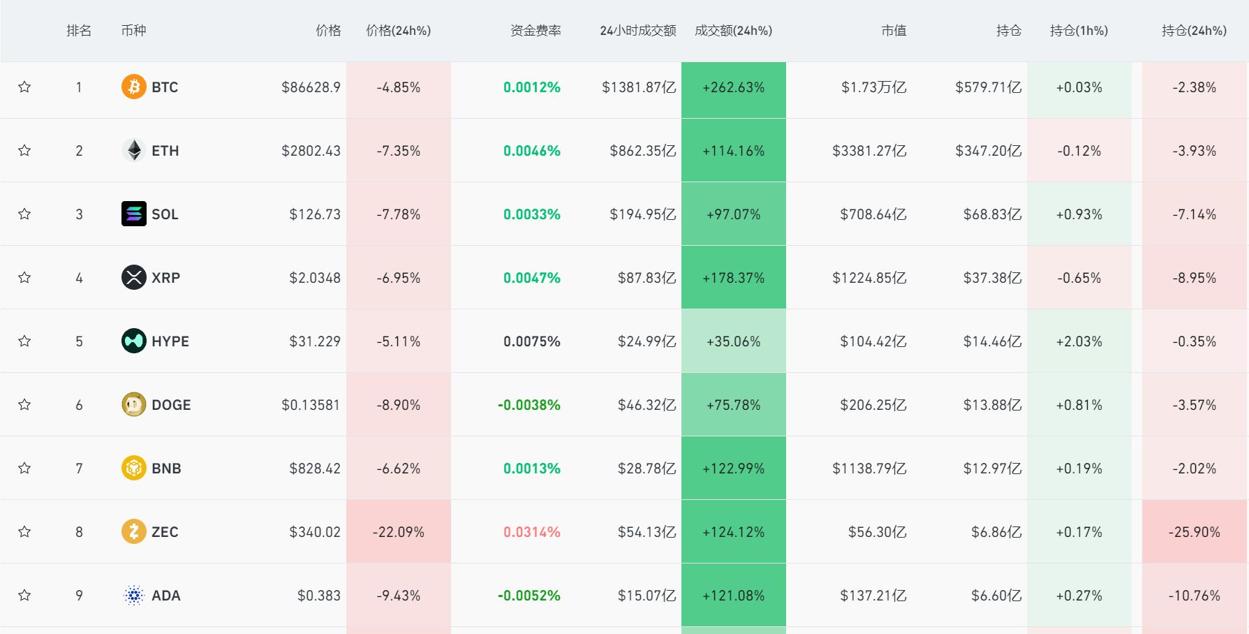 市场情绪趋于谨慎,加密货币的抛售行情再度加剧,比特币一度跌破8.4万美元。截至发稿,比特币跌幅超过4%,以太坊下跌超7%。