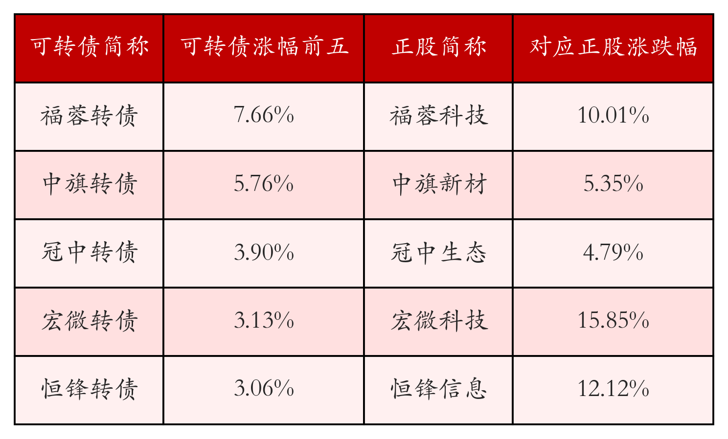 南财智讯12月2日电,南财金融终端盘后数据显示,债市方面,中证转债指数收跌0.52%,报479.58,成交额为443.71亿元。可转债方面,今日共成交395只可转债,其中56只收涨,1只收平,338只收跌。具体来看,7只可转债涨幅超过2%。其中福蓉转债(113672)涨7.66%,中旗转债(127081)涨5.76%,冠中转债(123207)涨3.9%。今日有34只可转债跌幅超2%,博俊转债(123222)跌5.54%,东时转债(113575)跌5.41%,大中转债(127070)跌4.87%。存在交易量的可转债所对应的正股中,101只收涨,17只收平,277只收跌。具体来看,9只可转债对应正股涨幅超过5%,其中,恒逸石化(000703)涨停,收涨10.05%。同时所对应的可转债:恒逸转债(127022)同涨3.05%。今日有1只可转债对应正股跌幅超过5%,没有正股跌停。