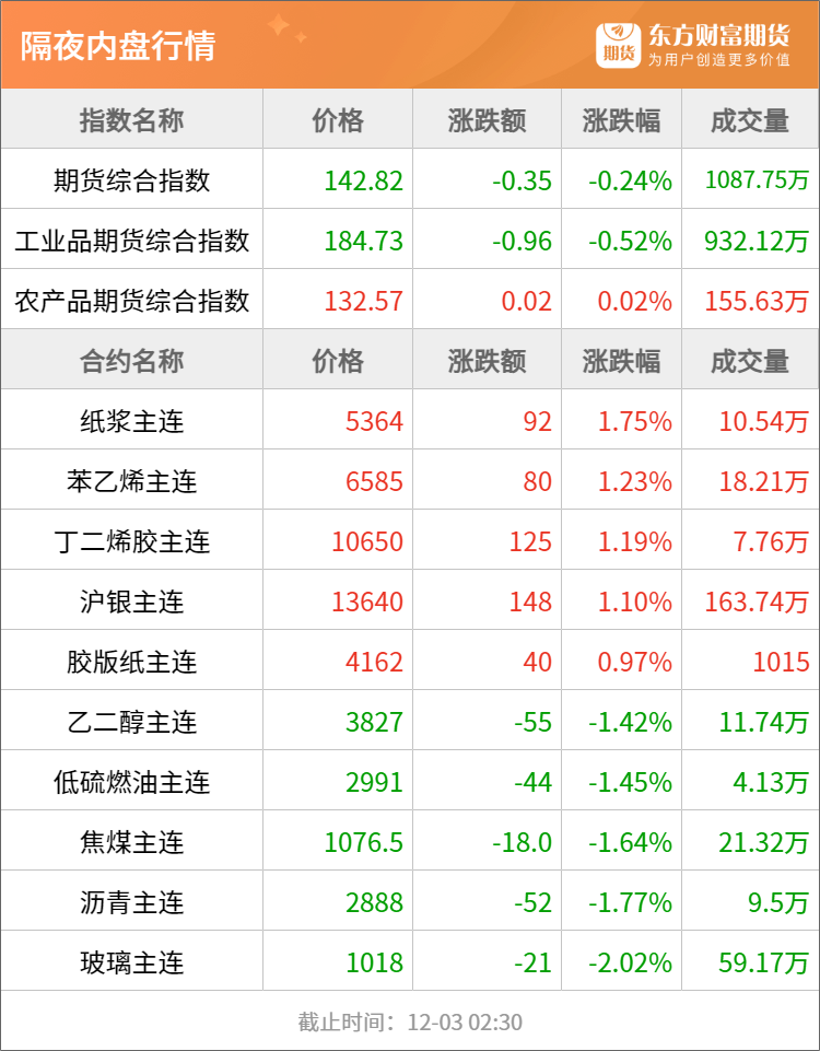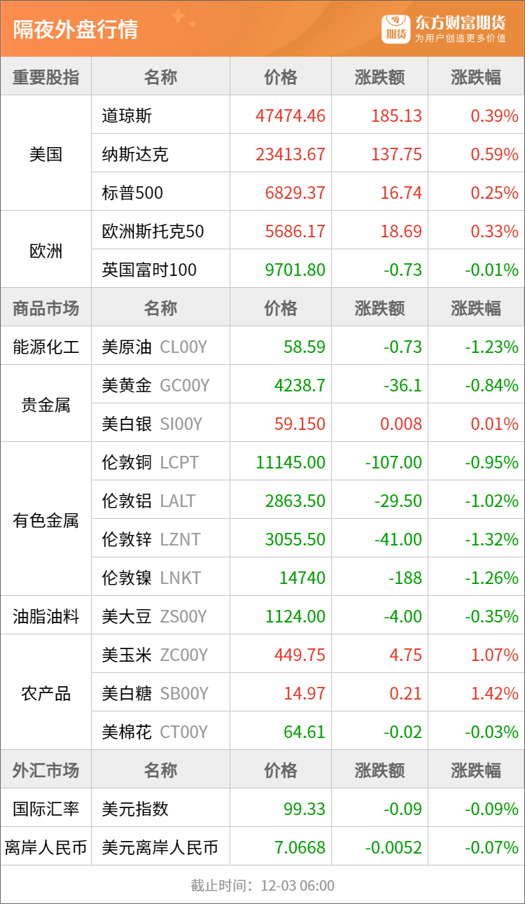 钢材:据Mysteel不完全统计,截至2025年12月2日,2家钢厂发布冬储政策,其中东北1家,华北1家,今日新增2家钢厂,定价锁货,遇涨不涨,遇降则降,可随时点价,(出库后也可以后点价,点价时间不可逆),保价到2026年3月31日。(Mysteel)