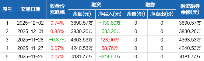 港股红利ETF:融资净偿还139.69万元,融资余额3690.57万元(12-02)