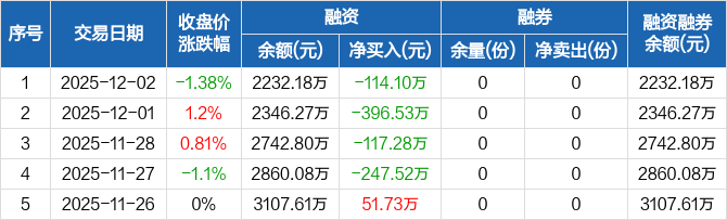 计算机ETF:连续4日融资净偿还累计875.43万元(12-02)