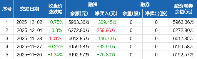 元道通信:融资余额5963.36万元,创近一年新低(12-02)