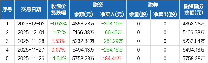 戎美股份:连续4日融资净偿还累计900万元(12-02)