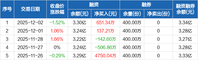 电池ETF:融资净买入651.34万元,融资余额3.3亿元(12-02)