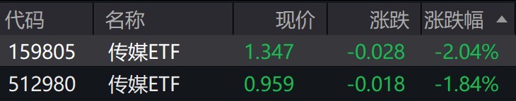 传媒概念股走低,恺英网络、昆仑万维跌超2%。