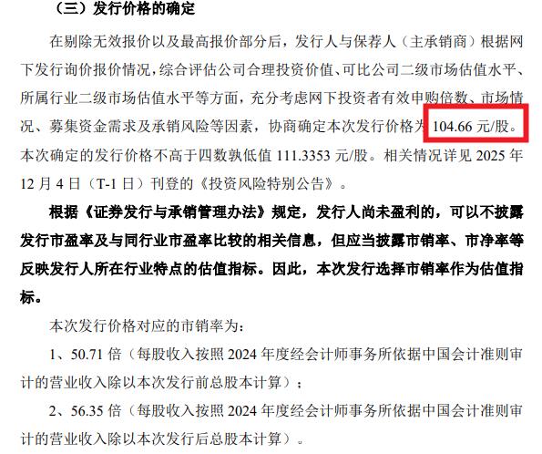 沐曦股份发布首次公开发行股票并在科创板上市发行公告,发行人与保荐人(主承销商)根据网下发行询价报价情况,协商确定本次发行价格为104.66元/股。