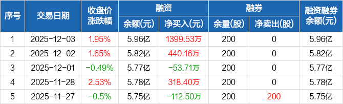 重庆路桥:融资净买入1399.53万元,融资余额5.96亿元(12-03)